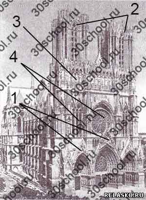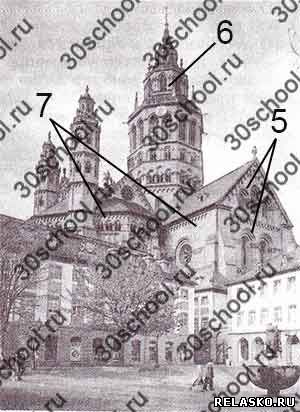 Рассмотрите иллюстрации. Перед вами современные фотографии двух средневековых соборов. К каким архитектурным стилям они относятся? Обозначьте на иллюстрациях цифрами и подпишите архитектурные элементы, характерные для этих стилей.
