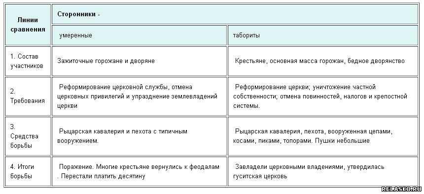 §24 - Задание №2 Заполните таблицу "Сторонники Яна Гуса"