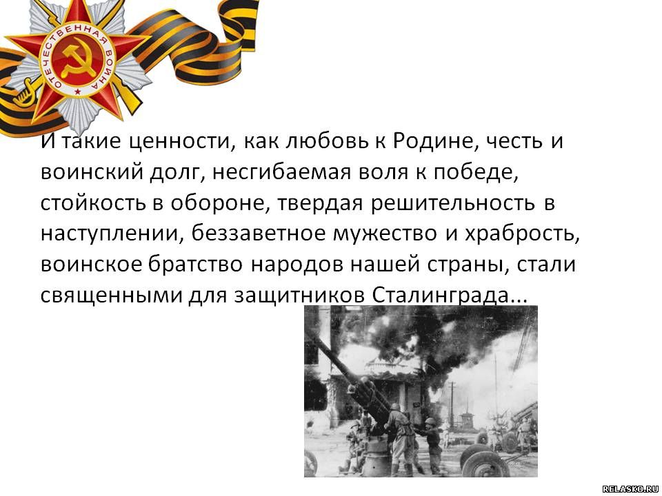 Предлагаем вам посмотреть пример доклад - презентация в картинках на тему "Сталинградская битва" для классного часа начальной школы