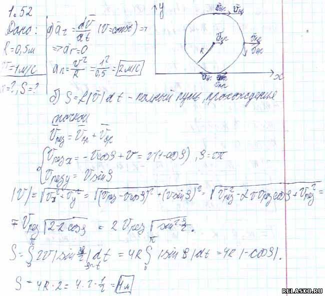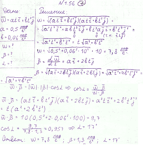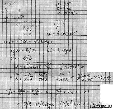 Шар радиуса R = 10,0 см катится без скольжения по горизонтальной плоскости так, что его центр движется с постоянным ускорением w = 2,50 см/с2. Через t = 2,00 с после начала движения его положение соответствует рис. 1.7. Найти: