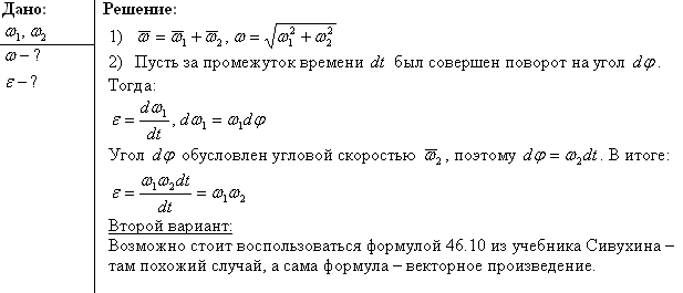Два твердых тела вращаются вокруг неподвижных взаимно перпендикулярных пересекающихся осей с постоянными угловыми скоростями ω1 = 3,0 рад/с и ω2 = 4,0 рад/с.