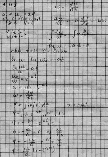 Твердое тело вращается вокруг неподвижной оси так, что его угловая скорость зависит от угла поворота φ по закону ω = ω0 - аφ, где ω0 и а — положительные постоянные. В момент времени t = 0 угол φ = 0. Найти зависимости от времени: