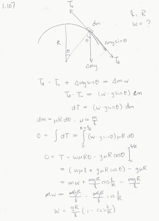 Задача № 1.107 Условие задачи: Цепочку длины l поместили на гладкую сферическую поверхность радиуса R так, что один ее конец закреплен на вершине сферы. С каким ускорением w начнет двигаться каждый элемент цепочки, если ее верхний конец освободить? Предполагается, что длина цепочки l < 1/2 πR. Решение задачи и правильный ответ: Продолжение решебника по Физике