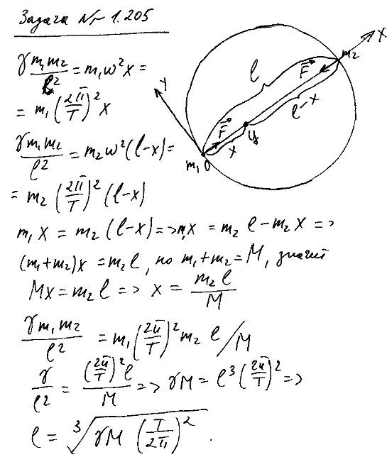 Задача № 1.205 Условие задачи: Двойная звезда — это система из двух звезд, движущихся под действием притяжения вокруг центра инерции системы. Найти расстояние между компонентами двойной звезды, если ее суммарная масса M и период обращения T. Решение задачи и правильный ответ: