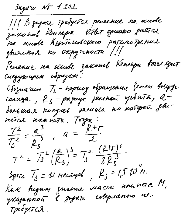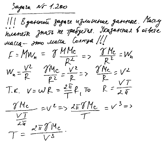 Задача № 1.200 Условие задачи: Некоторая планета массы M движется по окружности вокруг Солнца со скоростью v = 34,9 км/с (относительно гелиоцентрической системы отсчета). Найти период обращения этой планеты вокруг Солнца. Решение задачи и правильный ответ: