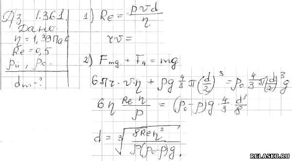 При каком наибольшем диаметре шарика его обтекание еще остается ламинарным? Известно, что переход к турбулентному обтеканию соответствует числу Re = 0,5 (это значение числа Re, при котором за характерный размер взят диаметр шарика).