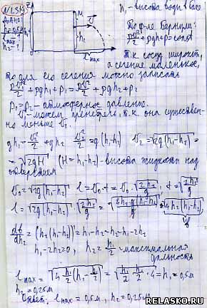Пренебрегая вязкостью, найти, на какой высоте от дна сосуда следует сделать небольшое отверстие, чтобы струя из него била в поверхность стола на максимальное расстояние lмакс от сосуда.