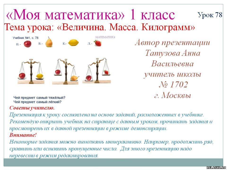 | Моя математика. 1 класс. Автор Татузова А. В.