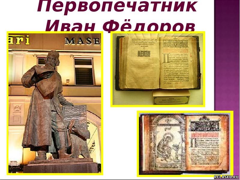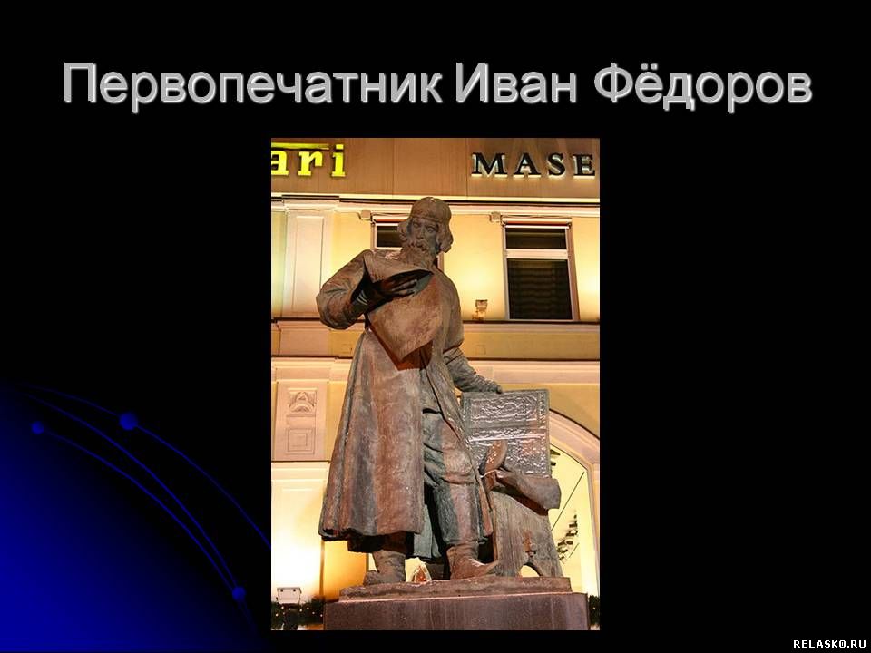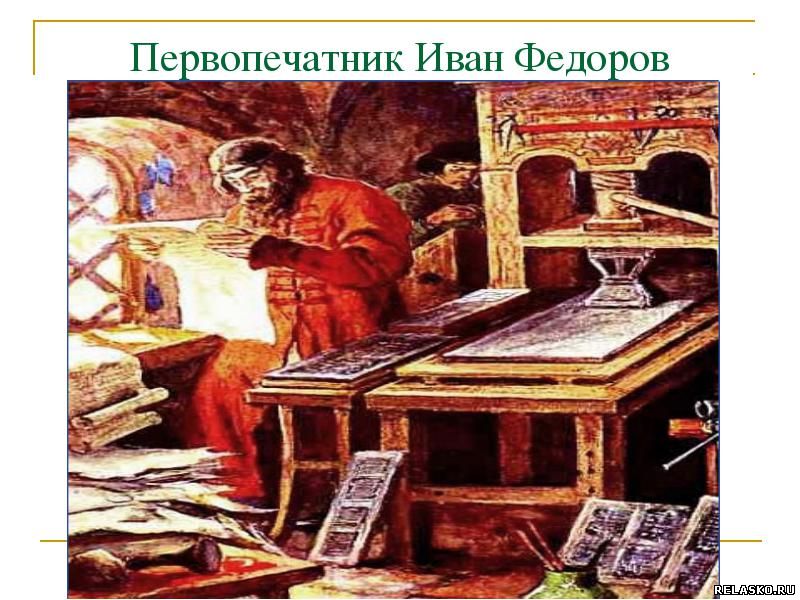Тот же путь прошел Иван Федоров(1510-1583) – основатель книгопечатания в России и Украине. По отдельным данным, учился в Краковском университете, где получил степень бакалавра. Имя первопечатника Ивана Федорова хорошо известно как в нашей стране, так и за ее пределами. Исследования последних десятилетий открыли новые, ранее неизвестные стороны деятельности Ивана Федорова. В прошлом столетии его считали не более чем ремесленником; теперь мы видим в нем просветителя, писателя, педагога, художника, общественного деятеля.