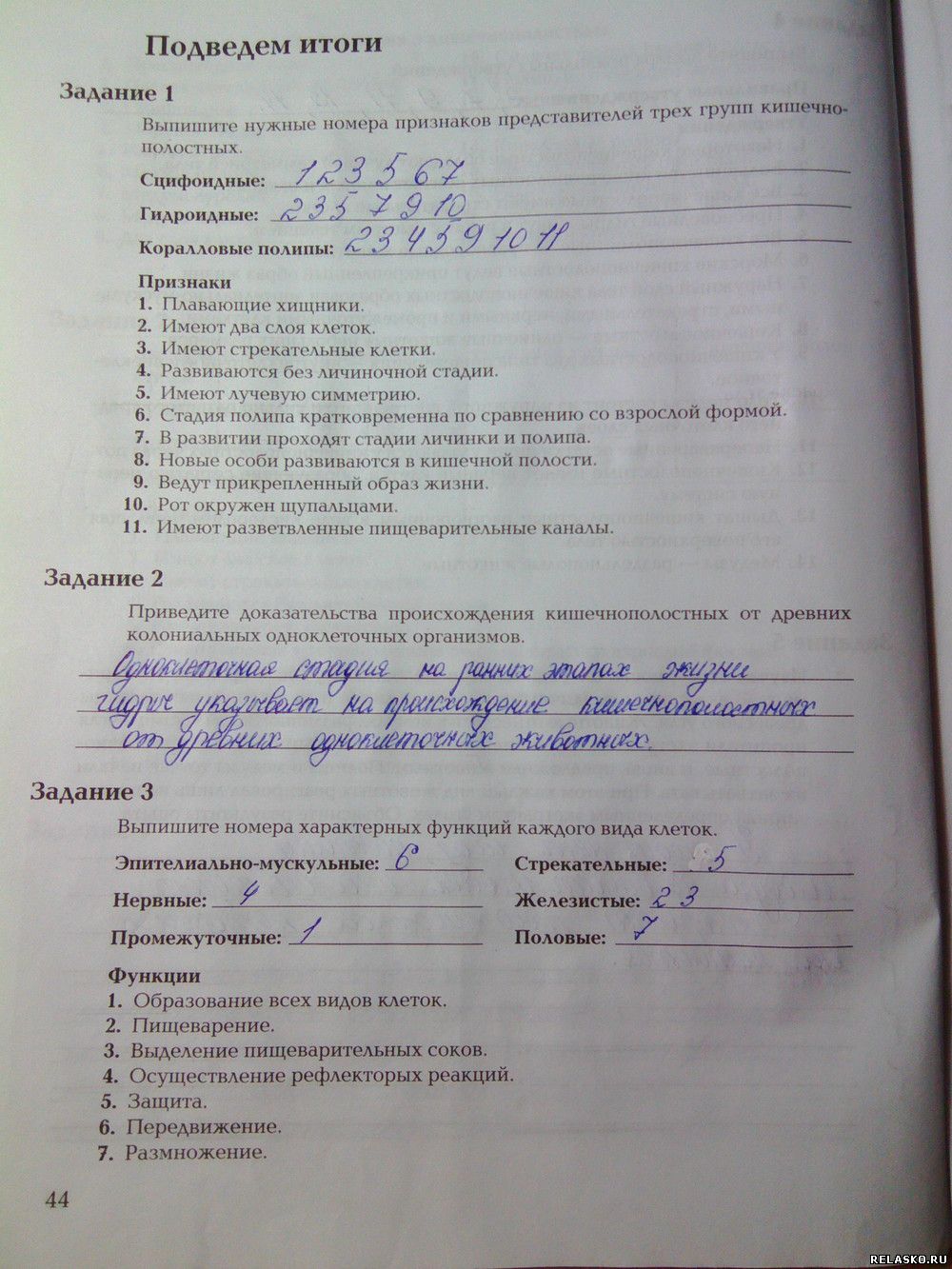 ГДЗ по Биологии. 7 класс. Рабочая тетрадь Суматохин Кучменко