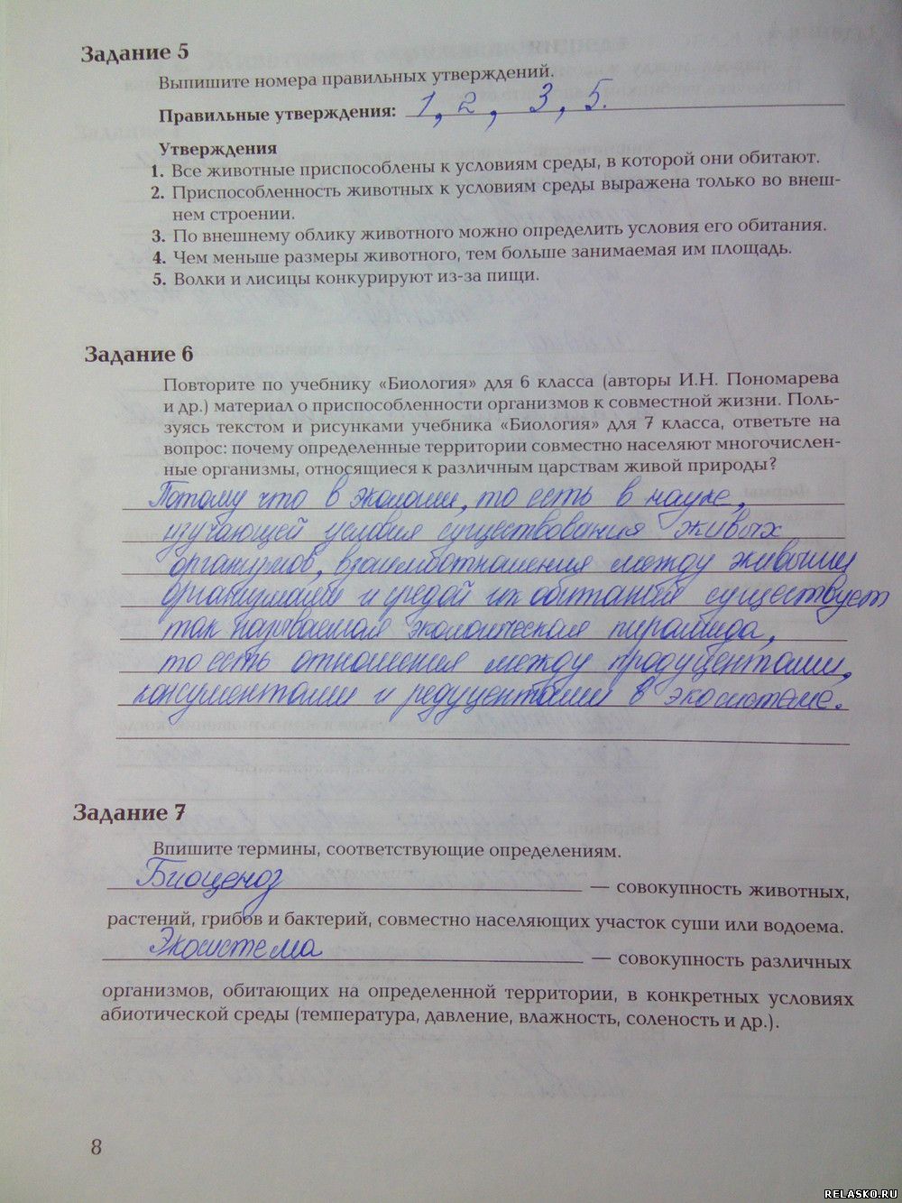 Решебник ГДЗ по Биологии. 7 класс. Рабочая тетрадь Суматохин В.С. Кучменко. 1 и 2 часть Авторы - Суматохин, Кучменко. Данный решебник и готовые домашние задания по Биологии предназначены для учителей и учеников 6 класса средней школы для проверки своих знаний предмета, а также для помощи в решении домашних заданий. Преподаватели биологии с помощью данного учебника смогут легко и быстро проверять домашние работы у своих учеников, а так же подготовиться к уроку. Оглавление решебника по Биологии. Рабочая тетрадь Суматохин В.С. Кучменко. 1 и 2 часть