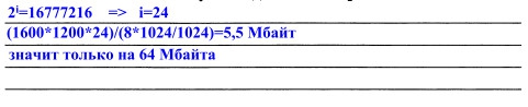 138. Вы хотите работать с разрешением 1600 х 1200 пикселей, используя 16 777 216 цветов. В магазине продаются видеокарты с памятью 512 Кбайт, 2 Мбайта, 4 Мбайта и 64 Мбайта. Какие из них можно купить для вашей работы?