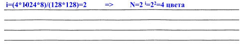 128. Сколько цветов будет содержать палитра, если на один пиксель отводится 4 бита памяти?
