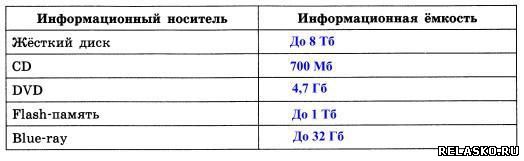 77. В сети Интернет найдите информацию о современных информационных носителях и заполните таблицу: