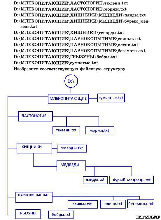 Изобразите файловую структуру, которая будет сформирована на диске D: после совершения этих действий.