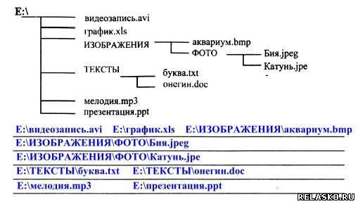 105. Запишите (в ОС Windows) полные имена всех файлов, размещённых на диске, файловая структура которого представлена ниже: