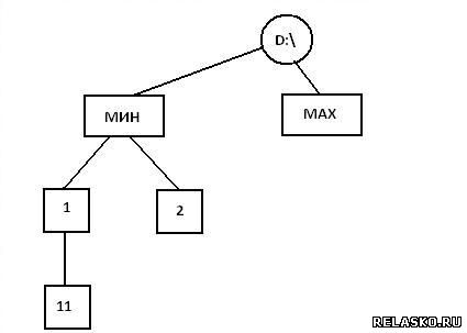 1) создать каталог МИН; 2) открыть каталог МИН; 3) создать каталог 1; 4) открыть каталог 1; 5) создать каталог 11; 6) подняться на один уровень вверх; 7) создать каталог 2; 8) подняться на один уровень вверх; 9) создать каталог МАХ.
