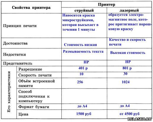 80. В сети Интернет найдите информацию о современных принтерах и заполните таблицу: