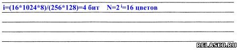 158. Несжатое растровое изображение размером 256 х 128 пикселей занимает 16 Кбайт памяти. Каково максимально возможное число цветов в палитре изображения?