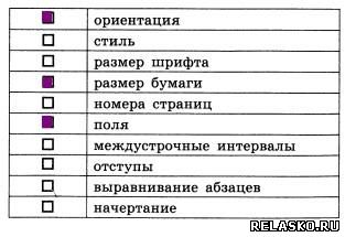 188. Выберите (отметьте галочкой) параметры, устанавливаемые при задании параметров страницы: