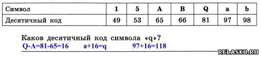 204. В таблице ниже представлена часть кодовой таблицы ASCII: