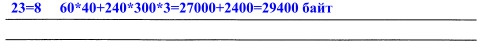 211. Документ состоит из текстовой и графической информации. Текст содержит 60 строк по 40 символов в каждой строке; информационный вес одного символа - 8 битов. Размер 8-цветного изображения — 240 х 300 пикселей. Вычислите информационный объём этого документа, ответ выразите в байтах.
