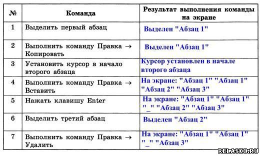 Учитель предложил ученику выполнить алгоритм команды которого представлены в таблице. Как изменится исходный текст после выполнения алгоритма? Заполните таблицу, отразив в ней результаты выполнения каждой операции.