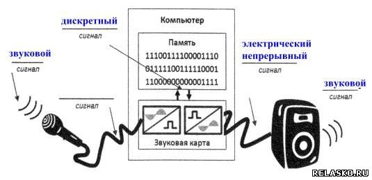 216. Сделайте недостающие записи на схеме преобразования звука при его компьютерной обработке: