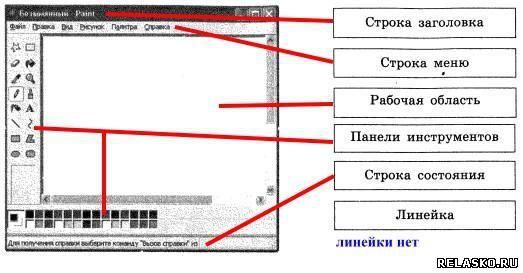 156. Соедините линиями основные элементы окна графического редактора Microsoft Paint и соответствующие им названия.