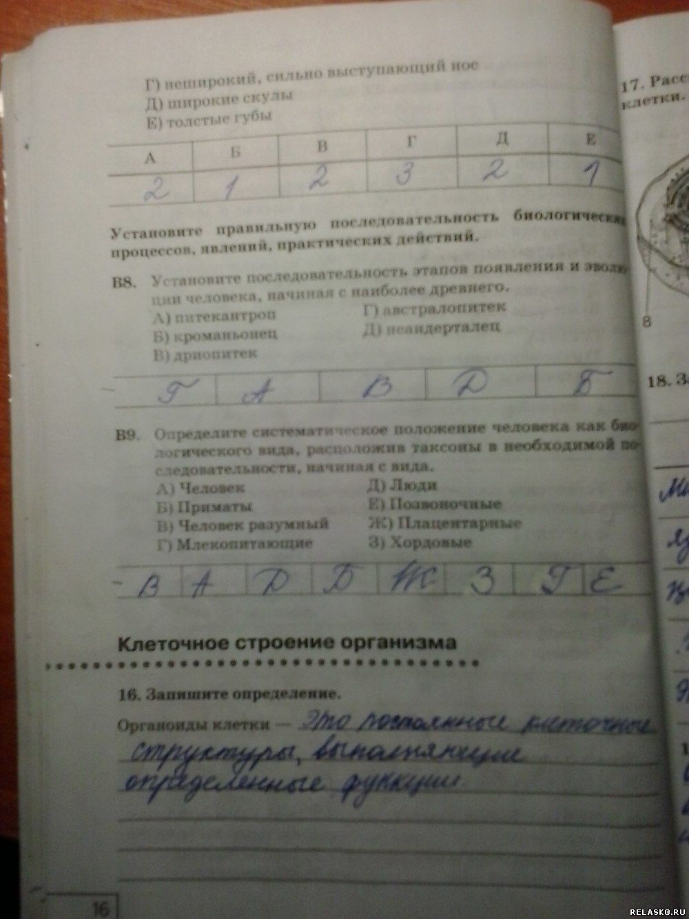 ГДЗ по Биологии. 8 класс. Рабочая тетрадь. Cонин