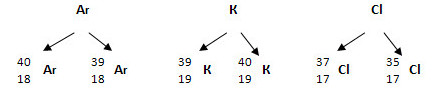 2) Были открыты изотопы – разновидности атомов одного и того же химического элемента с одинаковым числом протонов и разным массовым числом. Например: