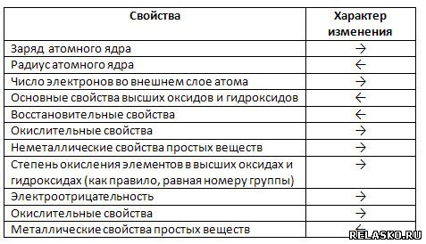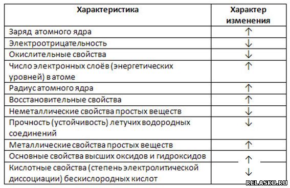 8. Используя стрелки →(усиление) или ←(ослабление), укажите характер изменения свойств элементов и образованных ими веществ в периодах слева направо.
