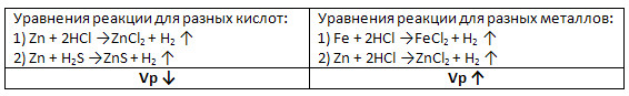 4. Зависимость Vp от природы реагирующих веществ на примере взаимодействия: кислота + металл = соль + водород.