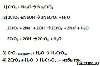 3. Оксид хрома (VI) проявляет кислотные свойства, поэтому взаимодействует с основными оксидами, основаниями (щёлочами). Приведите уравнения соответствующих реакций в молекулярной, полной и сокращённой ионной формах.