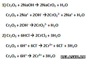 4. Оксид хрома (III) проявляет амфотерные свойства, поэтому взаимодействует и с кислотами, и со щелочами. Приведите уравнения соответствующих реакций в молекулярной, полной и сокращённой ионной формах.