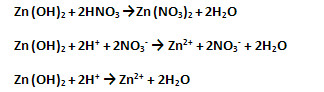 а) Как основание, амфотерный гидроксид взаимодействует с кислотой, образуя соль и воду (запишите молекулярное, полное и сокращённое ионное уравнения реакций).