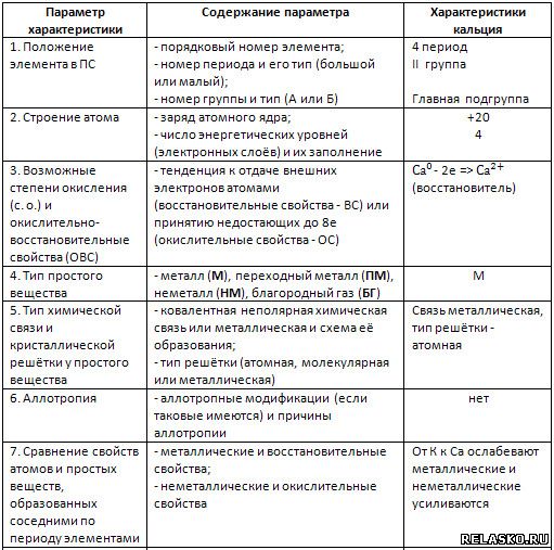 1. Заполните таблицу «Характеристика элемента на основании его положения в Периодической системе (ПС) Д. И. Менделеева» на примере элемента кальция.