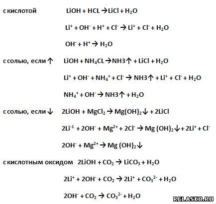 10) Гидроксид лития LiOH имеет основный характер и является растворимым основанием – щёлочью. Взаимодействует (напишите уравнения возможных реакций в молекулярной, полной и сокращённой ионной формах):