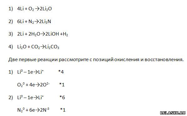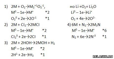 3. Общие химические свойства. Дополните уравнения реакций щелочных металлов с различными соединениями, записав окислительно-восстановительный баланс к ним.