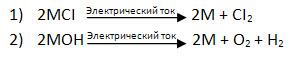a) 2M + 2HOH→2MOH + H2 б) M2O + HOH→2MOH