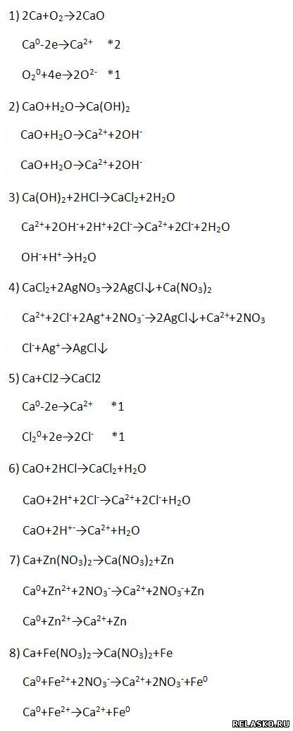 Первую и пятую реакции рассмотрите с позиций окисления-восстановления, остальные – в свете ТЭД. Для перехода Ca→Ca(NO3)2 предложите два варианта.