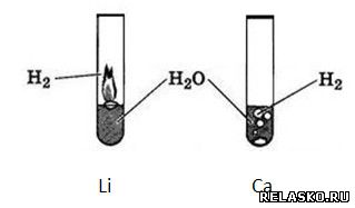 4. Укажите, в какой из пробирок отображено взаимодействие лития с водой, а в какой – кальция с водой.