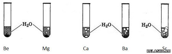 3. Проанализируйте рисунок «Взаимодействие щёлочноземельных металлов с водой». Подпишите химические формулы металлов. Объясните причину различной скорости реакций.