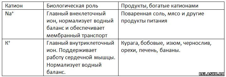 1. Заполните таблицу «Биологическая роль катионов натрия и калия».