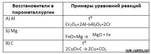 2. Заполните таблицу «Восстановители в пирометаллургии».