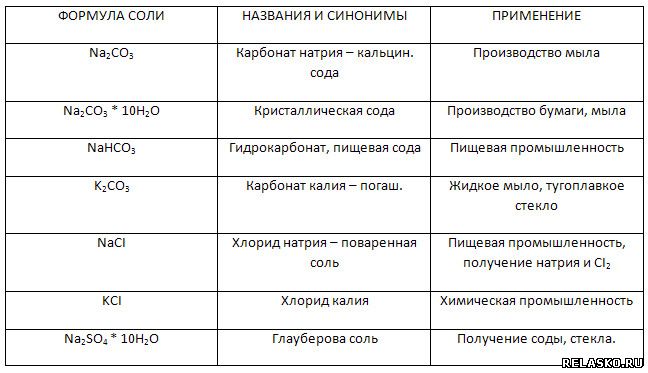 Заполните таблицу «Названия и применение солей металлов IA группы».
