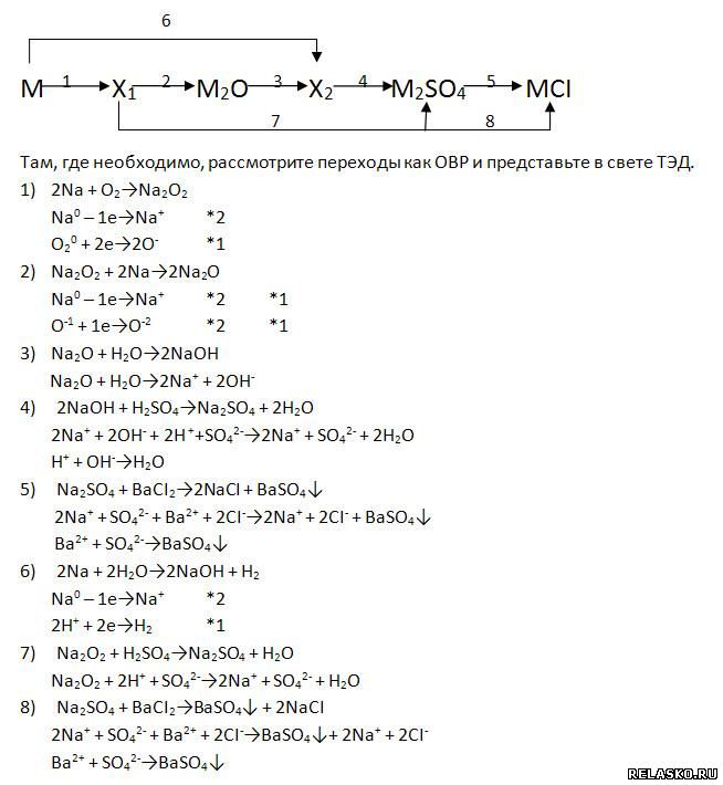2. Дополните цепочку переходов. Запишите уравнения реакций, с помощью которых можно осуществить превращения по схеме. Рассмотрите переходы как ОВР, а два последних перехода представьте в свете ТЭД.