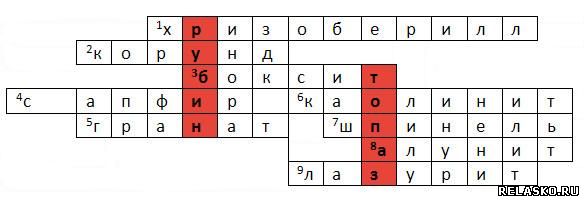 Составив кроссворд, вы получите в выделенных ячейках названия 2-х драгоценных камней, в составе которых есть алюминий.