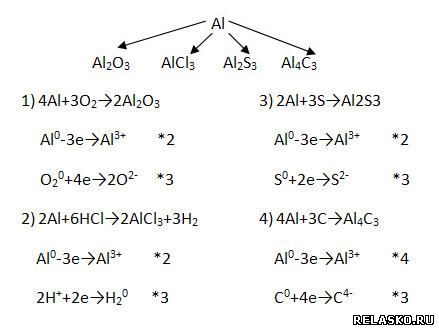 2. Al проявляет сильные восстановительные свойства, получая при этом с.о. +3, по соответствующей схеме: