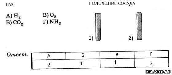 5. Соотнесите газ, собираемый способом вытеснения воздуха, с расположением сосуда.